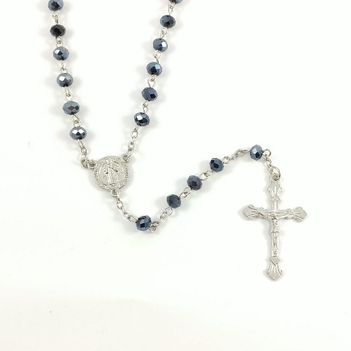 Home / Rosary Beads / Rosary: Blue/Black Crystal - St. Benedict Centerpiece