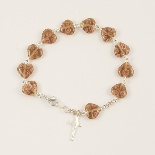 Home / Rosary Bracelets / Rosary Bracelet: Heart-Shaped Glass - Brown